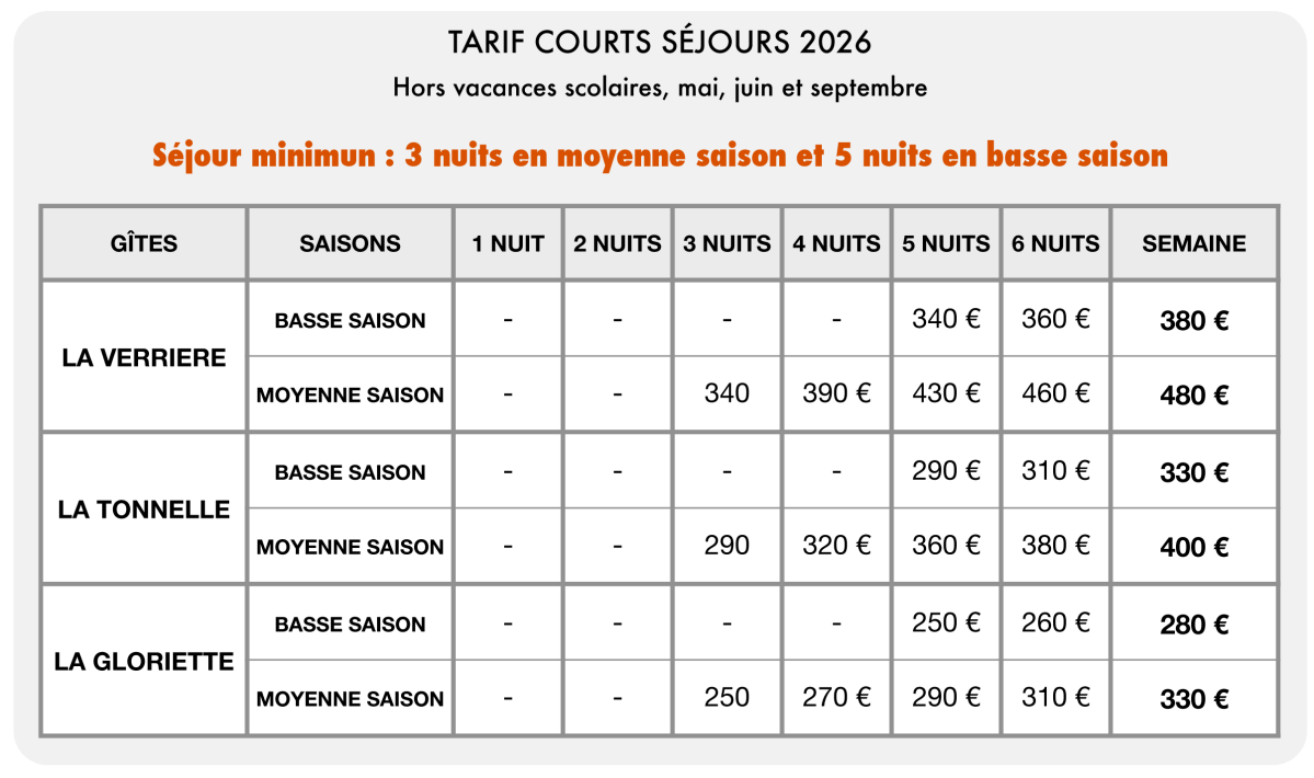 TARIFS COURTS SÉJOURS